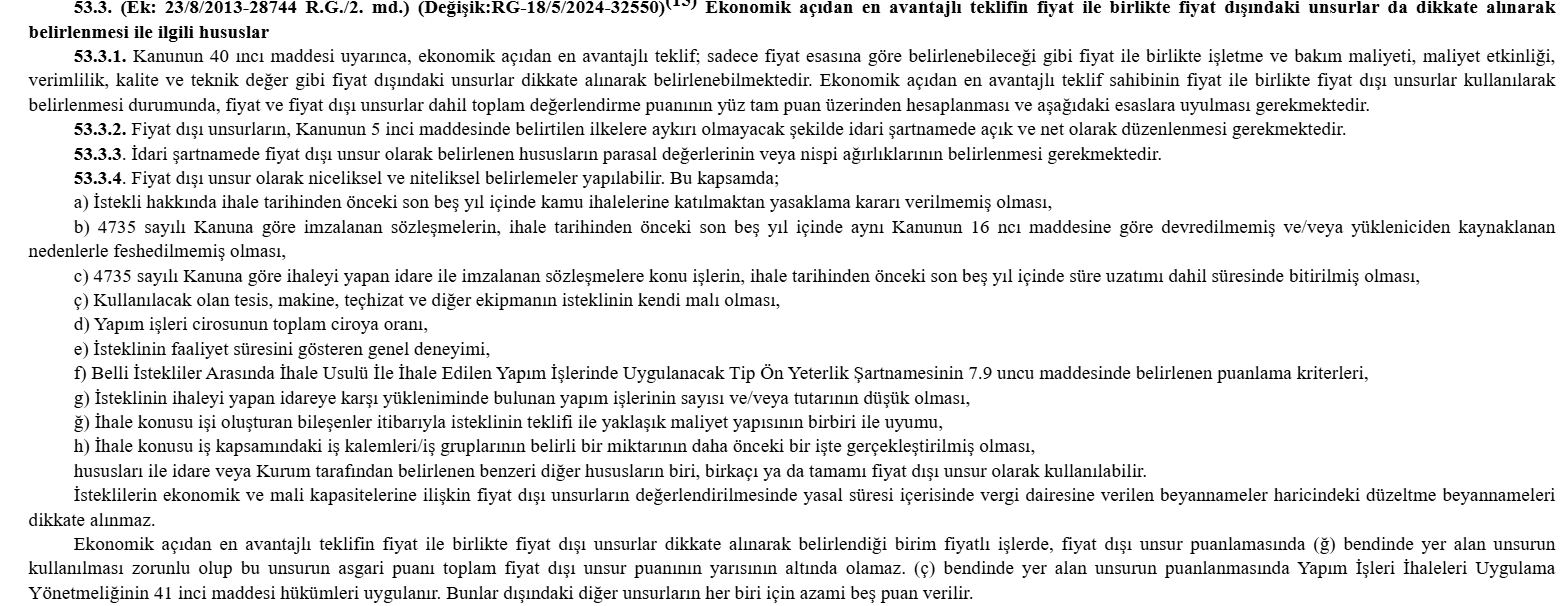 Fiyat dışı bir çok unsur ihalelerde öne sürülebiliyor. Kamu ihale genel tebliğinde bu başlıklar şu şekilde sıralanmakta;